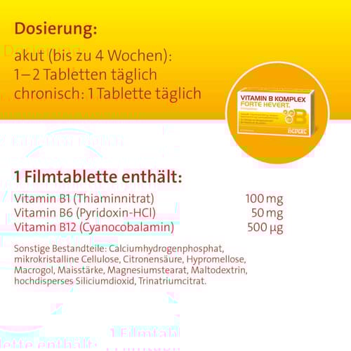 Vitamin B Komplex forte Hevert zur Therapie nachgewiesener Mangelzustände der Vitamine B1, B6 und B12, 100 St. Tabletten