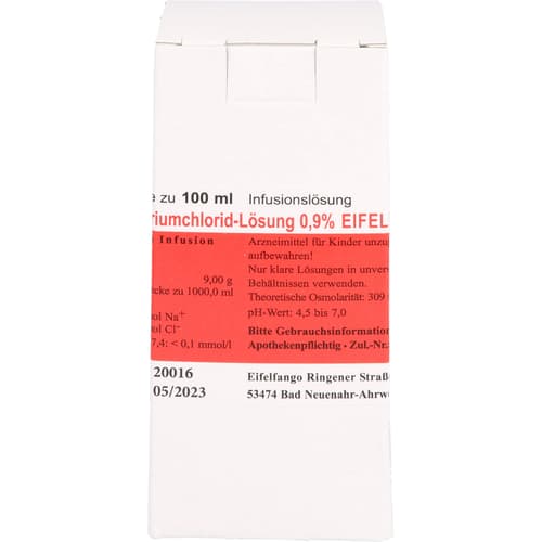 Isotonische Natriumchlorid-Lösung 0,9 % EIFELFANGO zur Flüssigkeits- und Elektrolytsubstitution, 100 ml Lösung