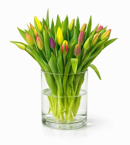 Holen Sie sich den Frühling ins Haus mit diesem wunderschönen bluums. Tulpen Mix XXL! Dieser großzügige Bund aus den Niederlanden enthält 18 leuchtende Tulpen mit kräftigen, etwa 40 cm langen Stielen. Perfekt, um jeden Raum aufzuhellen, sind diese zauberhaften Blumen eine wunderbare Art, die Saison zu begrüßen. Einfach frisches Wasser hinzufügen und ihre natürliche Schönheit genießen.