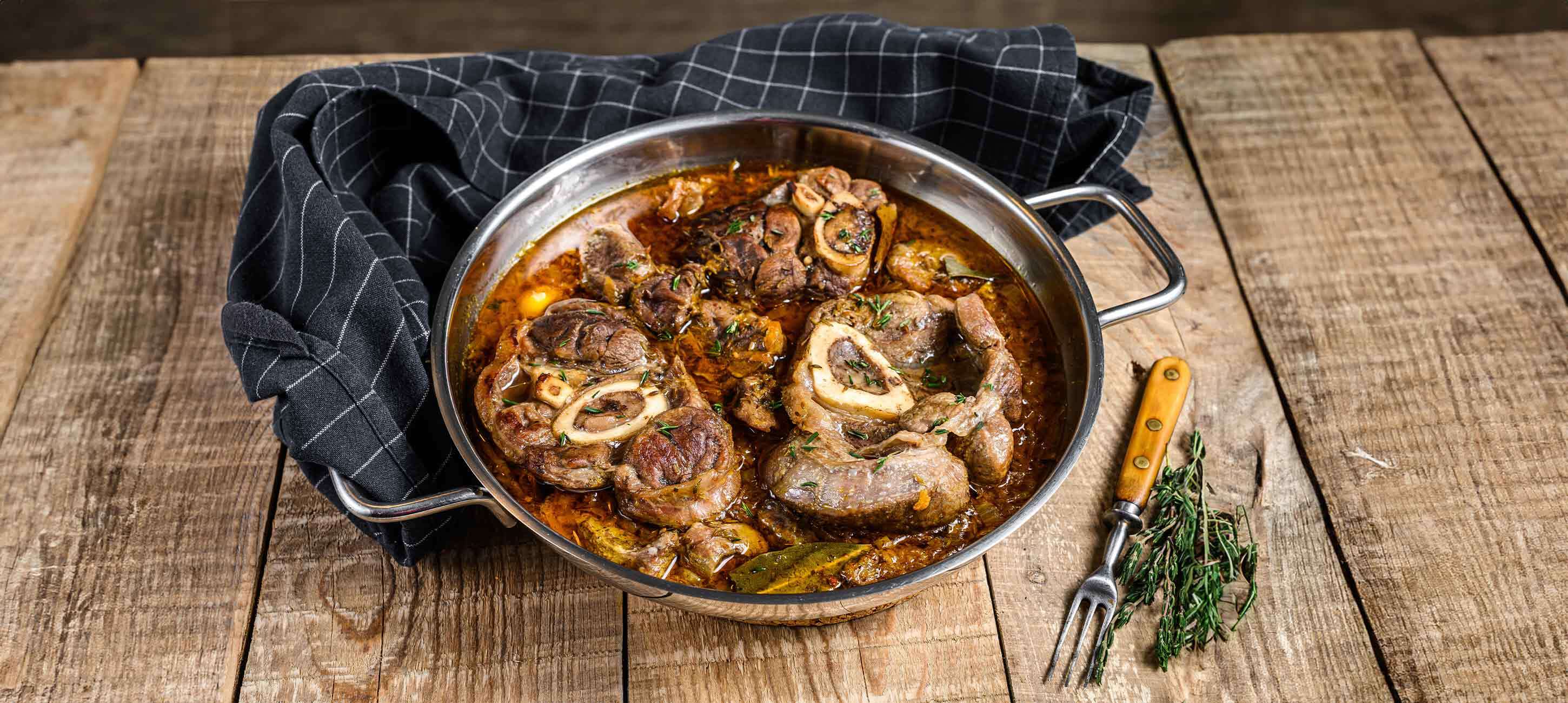 - 5Das Ossobuco mit Spaghetti servieren.