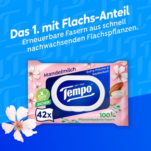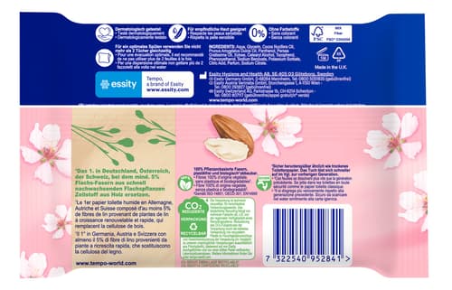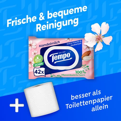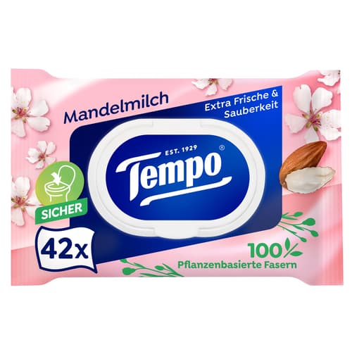 Tempo moist toilet tissues, almond milk, 42 pieces