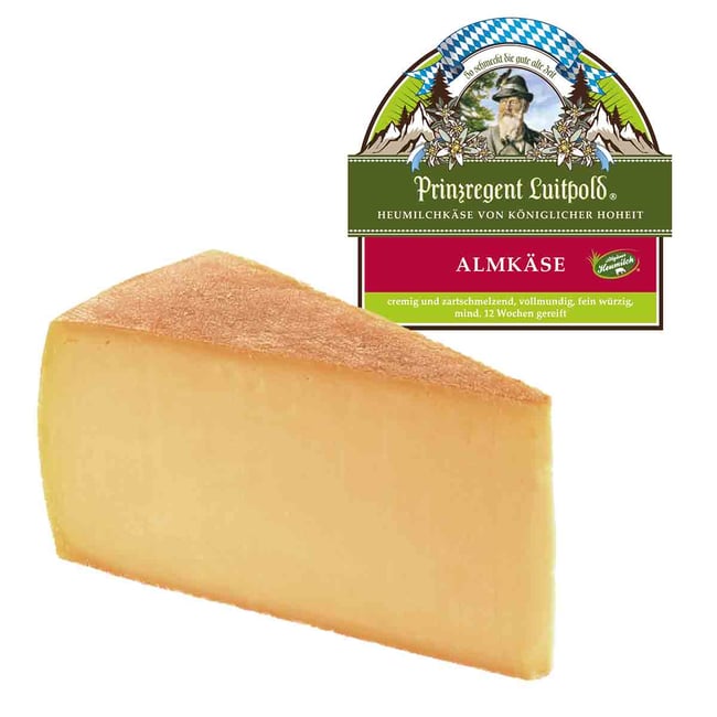 Der Prinzregent Luitpold Almkäse besticht durch sein besonders vollmundiges, fein-würziges Aroma und seiner cremigen und zartschmelzenden Textur. Auf der Zunge zergehend verbinden sich die Heumilcharomen zu einem nachhaltigen Geschmackserlebnis.
