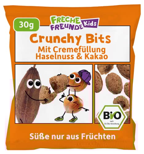 Freche Freunde Kids Bio Crunchy Bits mit Cremefüllung Haselnuss & Kakao