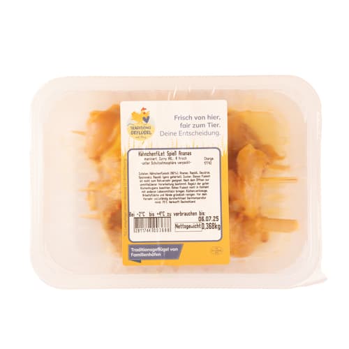 Traditionsgeflügel Hähnchenfiletspieß gewürfelt Curry Ananas