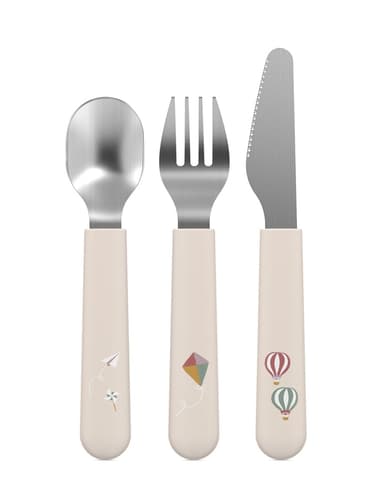 3-teiliges Kinderbesteck-Set. Das Set enthält eine Gabel, ein Messer und ein Löffel.