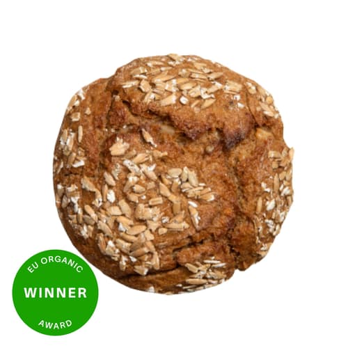 Ein kräftiges Vollkornweckerl aus 100 % Bio-Zutaten: mit regionalem Waldstaudenroggen, Einkorn und gekeimten Saaten. Mild säuerlich, nussig im Geschmack und reich an Ballaststoffen.