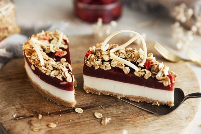 Garantierte Mindesthaltbarkeit dieses Produktes: 1 Tag.Wenn die Mindesthaltbarkeit eines Produkts aus deinem Einkauf kürzer sein sollte, kontaktiere uns und wir erstatten dir den für die Ware gezahlten Betrag in Credits. Dies gilt nicht für Artikel aus der Kategorie "Rette Lebensmittel".Zutaten: Erdbeeren 23,5 %, Quark 22,0 %, Sahne 16,4 %, Kekse [Getreide 72,9 % (Weizenmehl 56,3 %, Weizenvollkornmehl 16,6 %), Zucker, Palmfett, Rapsöl, Weizenstärke, Backtriebmittel: Ammoniumcarbonate, Natriumcarbonate; Emulgatoren: E472e, Sojalecithine; Vollmilchpulver, Salz, Vitamine und Mineralstoffe (Magnesiumcarbonat, Vitamin E, elementares Eisen, Vitamin B1), Aromen, Säureregulator: Zitronensäure; Mehlbehandlungsmittel: Natriumdisulfit], Butter 8,8 %, Puderzucker, Kristallzucker, gebackenes Erdbeer-Müsli 2,9 % [glutenfreie Haferflocken 64 %, Mandeln, Honig, weiße Schokolade (Zucker, Kakaobutter, Vollmilchpulver, Molkenpulver, Laktose, Sojalecithin), Olivenöl, gefriergetrocknete Erdbeeren 3,7 %], Speisegelatine vom Schwein, weiße Schokoladenspirale 0,9 % (Zucker, Kakaobutter, Vollmilchpulver, Magermilchpulver, Laktose, Emulgator: Sojalecithin; natürliches Vanille-Aroma).