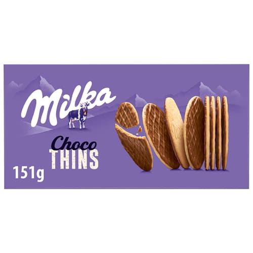 Entdecken Sie den zarten Knuspergenuss der Milka Choco Thins. Ein unwiderstehliches Zusammenspiel, das Ihren Tag versüßen wird.
