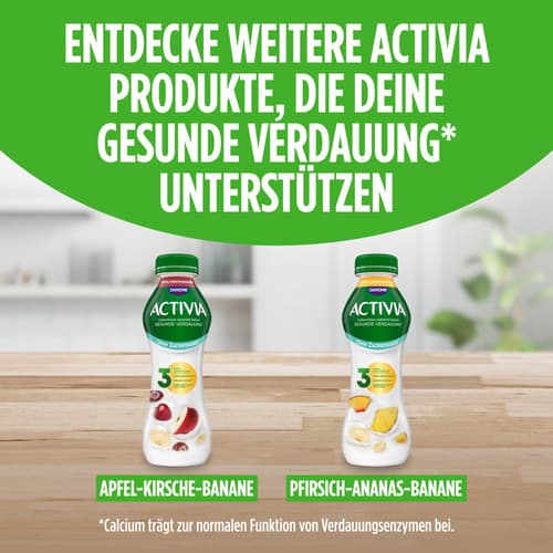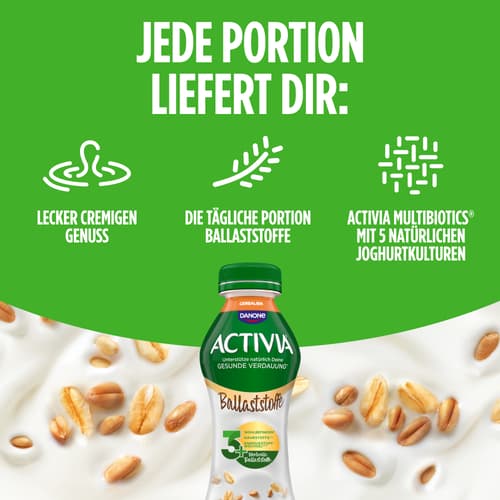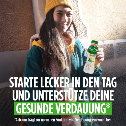 Entdecke den Activia Drink Cerealien – ein wohltuender Trinkjoghurt mit der probiotischen Kultur Bifidobacterium animalis DN 173 010, auch bekannt als Bifidus Actiregularis. Diese Kulturen wurden gezielt ausgewählt, um dein Verdauungswohl zu unterstützen.