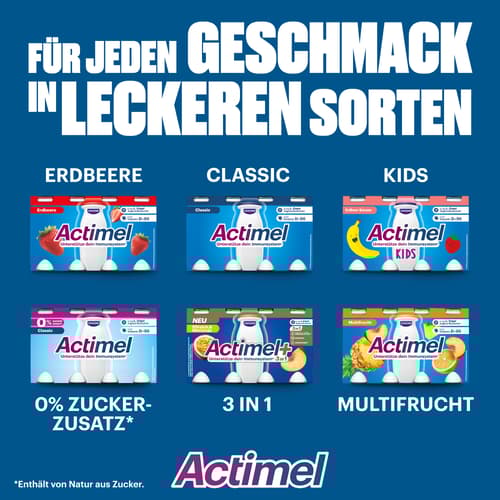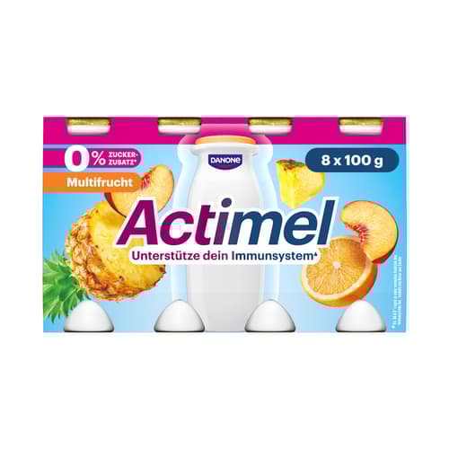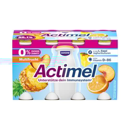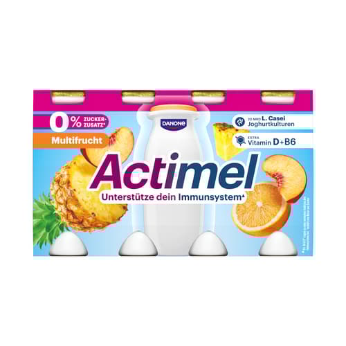 Entdecke deinen täglichen Immun-Booster mit Actimel Multifrucht – kalorienarm, fettarm und voller Geschmack.