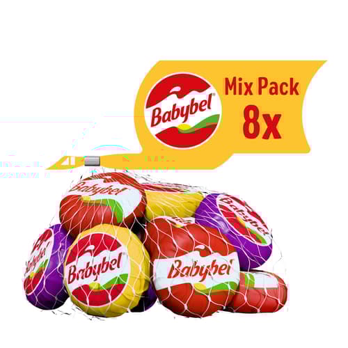 Mini Babybel Mix Netz Schnittkäse, Cheddar & Emmentaler Geschmack - 8er Pack