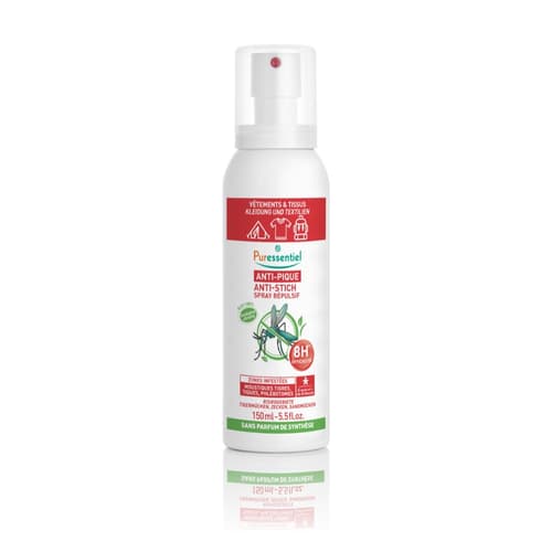 Puressentiel Anti-Stich Abwehrspray für Kleidung und Textilien mit Zitronen-Eukalyptus – schützt bis zu 8 Stunden vor Mücken und Stechinsekten, 150 ml Spray