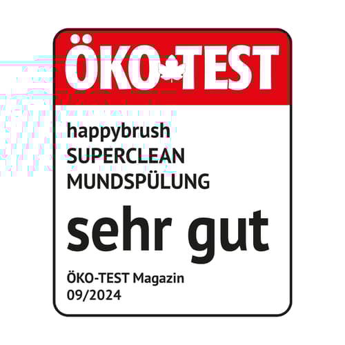 The happybrush SuperClean Mouthwash offers comprehensive 6-fold protection for your oral health. Its antibacterial mint formula ensures long-lasting fresh breath and at the same time cares for the gums. The addition of xylitol effectively protects the teeth from caries. The mouthwash is 100% vegan, gluten-free and is manufactured in Germany. It is also delivered in a 100% recycled bottle, which makes it particularly environmentally friendly. For optimal results, it is recommended to rinse daily after brushing your teeth with 15-20 ml for 30 seconds. Do not swallow!