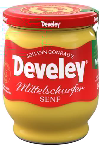 Deutschland,Unser Mittelscharfer Senf ist der würzig-milde Senf-Klassiker im Develey Sortiment. Sonnengereift und frisch vermahlen verleihen hochwertige Senfsaaten dem Würztalent sein unverwechselbares Aroma. Er ist das i-Tüpferl zum Fleischpflanzerl, Würstel und zur Brotzeit.