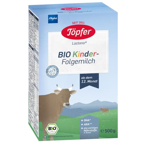 • Deshalb liefert unsere Töpfer BIO Kinder-Folgemilch diese wertvolle Nährstoffe. Mit wertvollen ungesättigten Fettsäuren DHA (Omega-3) und ARA (Omega-6). DHA trägt zur Entwicklung der Sehkraft bei Babys bei.