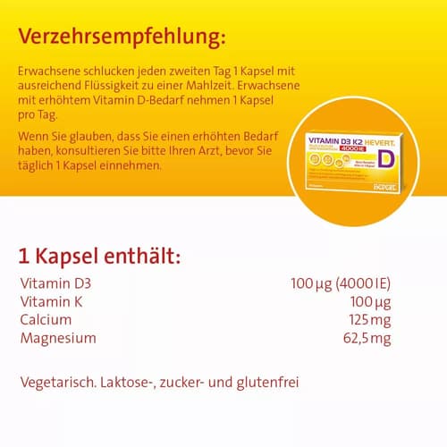 Vitamin D3 K2 Hevert® plus Calcium und Magnesium 4000 IE, 60 St., 60 St. Kapseln