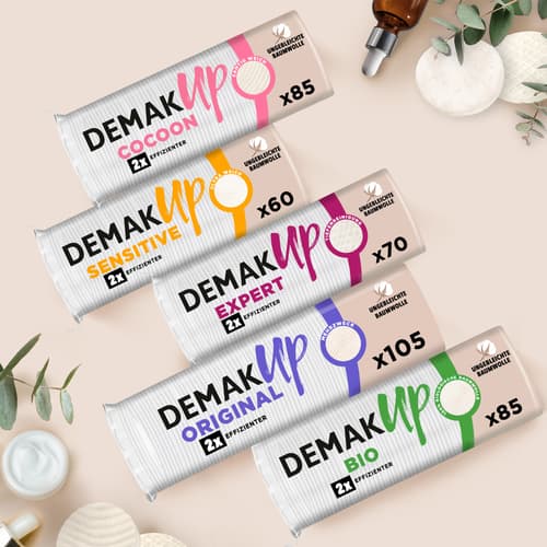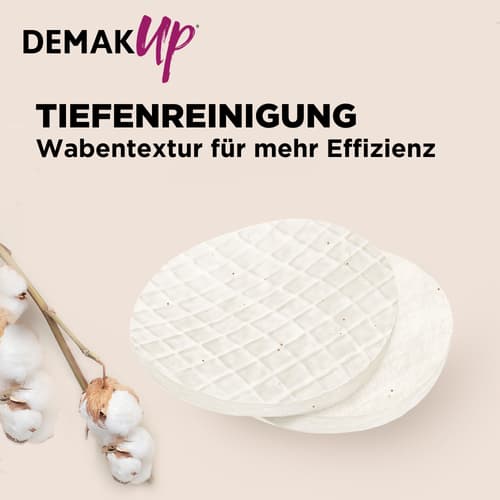 Die Demak'Up Wattepads Expert in runder Form eignen sich zur täglichen Gesichtsreinigung und zum Abschminken. Sie bestehen aus einer speziellen Kombination aus Baumwolle und Mikrofaserstruktur und sind für eine gründliche Reinigung konzipiert.