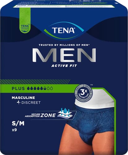 Die Tena Men Pants Plus in Blau bieten diskreten Schutz bei mittlerer Blasenschwäche. Die Einweghosen sind speziell für die männliche Anatomie entwickelt und kombinieren Sicherheit mit einem körpernahen Sitz.