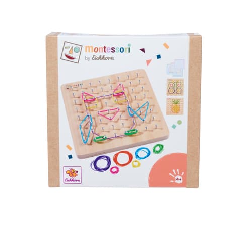 Das Eichhorn Montessori Geo Board ist ein Lernspielzeug aus Holz, das Kindern spielerisch hilft, geometrische Formen und Muster zu entdecken. Es eignet sich zur Förderung der Feinmotorik, Kreativität und Konzentration und unterstützt das eigenständige Lernen nach Montessori-Prinzipien.