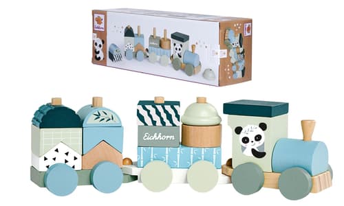 Der Eichhorn Wooden Train besteht aus einem Holzzug mit mehreren Wagen und verschiedenen Steckelementen. Das Set fördert die Kreativität, Motorik und das Rollenspiel von Kindern und eignet sich ideal für den Einsatz im Kinderzimmer.