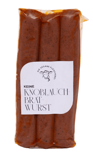 - Würzige vegane Bratwurst mit feiner Knoblauchnote.