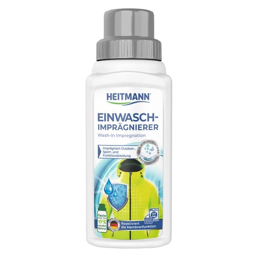 Der HTM Einwaschimprägnierer schützt Textilien vor Nässe und Schmutz. Er wird direkt in die Waschmaschine gegeben und ist für Funktionsbekleidung geeignet.