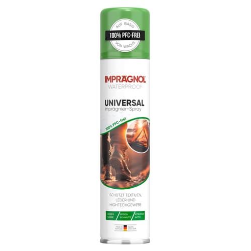 Das IMPRÄGNOL Imprägnierspray schützt Textilien und Leder zuverlässig vor Nässe. Es ist PFC-frei und für Outdoor- und Funktionskleidung geeignet.