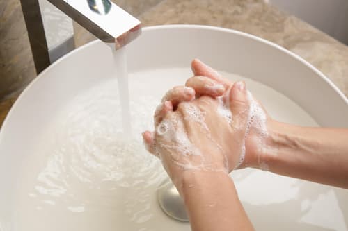 - Alkoholbasiertes Desinfektionsspray für die Hände.