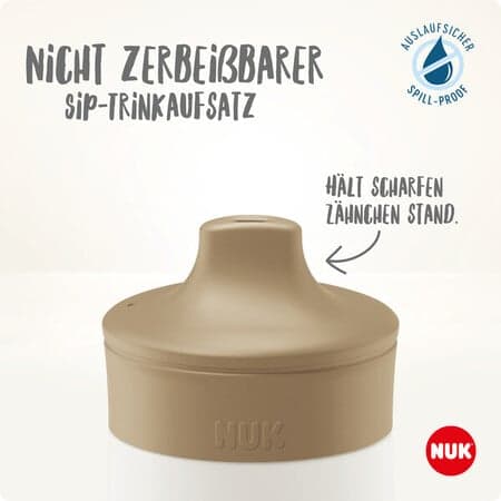 Der innovative Trinkaufsatz hält kleinen Zähnchen locker stand. Ein klares Bekenntnis zu Nachhaltigkeit und Qualität. Euer Look – euer Lebensstil NUK Mini-Me ist ein mitwachsendes System. Wähle zwischen Edelstahl und bruchsicherem Hartkunststoff. Wähle aus verschiedenen Füllmengen. Wähle zwischen dem festen Sip-Trinkaufsatz und dem klappbaren Flip-Aufsatz. Und stelle dir genau die Flasche zusammen, die du für dein Kind möchtest. Auslaufsicher und robust ist sie sowieso. Gemacht für die ersten Abenteuer und alles, was danach kommt. So verkörpert die neue NUK Mini-Me den Look und den Lebensstil, den du mit deinem Kind teilen möchtest. * Bei diesem Kunststoff handelt es sich um ein Material, das sich durch das ISCC PLUS zertifizierte Massenbilanzverfahren zu 100% auf nachwachsende Rohstoffe zurückführen lässt. Einfach sauber Am Ende eines aufregenden Tages lässt sich die Flasche ganz leicht reinigen. Einfach das Produkt in Einzelteile zerlegen und im warmen Spülwasser reinigen. Anschließend mit klarem Wasser abspülen und ausschütteln. Auseinandergebaut trocknen lassen. So ist die Flasche im Handumdrehen bereit für den nächsten Tag. Zusätzlich ist die Flasche auch zur Reinigung in der Spülmaschine geeignet. Hierbei können jedoch Materialschäden durch aggressive Reinigungsmittel entstehen.