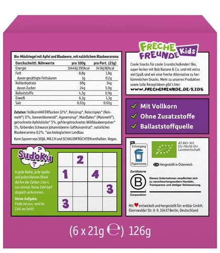 Freche Freunde Kids Bio Crispy Riegel Apfel & Blaubeere