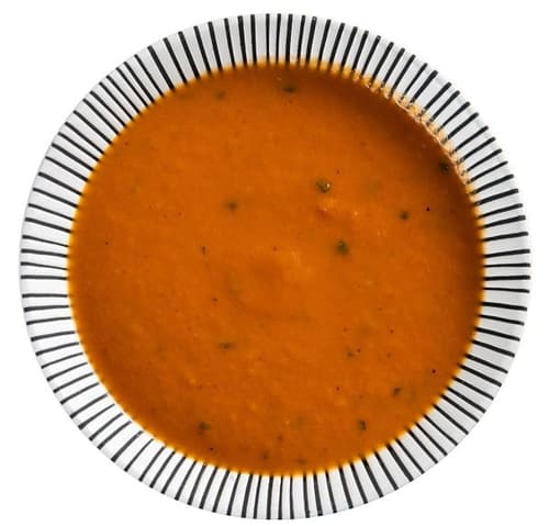 Tomaten 70%, SAHNE 10%, Gemüsebrühe (Wasser, Gemüse in wechselnden Anteilen: Karotten, SELLERIE, Petersilie, Zwiebeln), Tomatensaft 10% (Tomatensaft aus Konzentrat, Speisesalz), BUTTER, frisches Basilikum 2%, Knoblauch, schwarzer Pfeffer, Speisesalz.