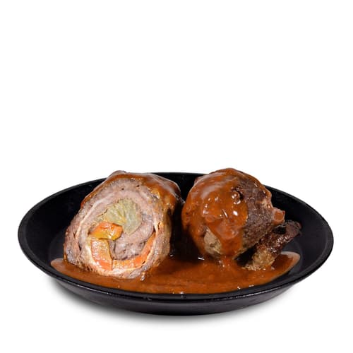 In dieses feine Fleisch wickeln die Feinkostköche von Lindner die traditionelle Füllung aus Möhren, Zwiebeln, Speck und Gewürzgurken. Scharf angebraten und schonend gegart, entfaltet sie in der aromatischen Sauce ihren vollen Geschmack.