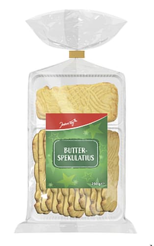 WEIZENMEHL, Zucker, 16 % BUTTERREINFETT, VOLLEIPULVER, Backtriebmittel: Diphosphate, Natriumcarbonat; MAGERMILCHPULVER. Kann Spuren von SCHALENFRÜCHTEN, ERDNÜSSEN, LUPINEN, SESAM und SOJA enthalten