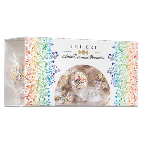 Antica C Torroneria Piemontese Cri ri, Haselnuss in Schokolade mit Zuckerstreuseln, Box