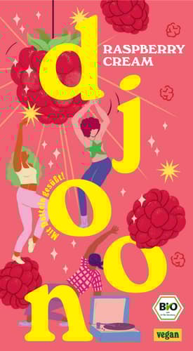 Zutaten: Kakaobutter, gemahlene Datteln (30%), CASHEWkerne, glutenfreies HAFERdrinkpulver, gefriergetrocknete Himbeeren (7 %)