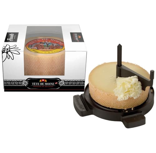 - Tête de Moine ist ein halbharter Rohmilchkäse, der traditionell **nicht geschnitten**, sondern in feine Rosetten geschabt wird.