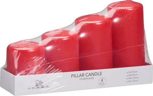 Dieses Set enthält 4 rote Kerzen. Sie eignen sich ideal für Tischdekorationen und saisonale Arrangements.
