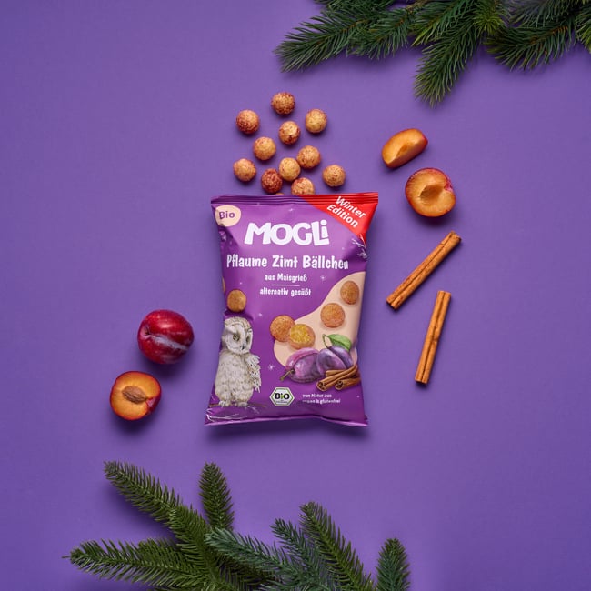 Winterzeit ist Knabberzeit – mit den MOGLi Pflaume Zimt Bällchen! Die luftig-leichten Knusperkugeln vereinen fruchtige Pflaume mit einer feinen Zimtnote und sorgen so für echte Adventsstimmung in jeder Pause. Aus Maisgrieß gepufft, vegan und mit nur wenigen Zutaten hergestellt, kommen sie ganz ohne Palmfett, künstliche Aromen oder unnötige Zusätze aus. Die mild-süße Rezeptur ist perfekt auf Kinder abgestimmt und macht die Bällchen zu einem leckeren Bio-Kindersnack, der die ganze Familie begeistert – ob zuhause beim Plätzchenbacken, unterwegs auf dem Weihnachtsmarkt oder als kleine Stärkung nach dem Winterspaziergang.Und das Beste: Die MOGLi Pflaume Zimt Bällchen sind nicht nur natürlich lecker, sondern auch in Bio-Qualität. Ein weihnachtlicher Snackmoment, der jede Brotdose und jede Pause besonders macht. Jetzt probieren und mit MOGLi natürlich durch den Advent snacken!