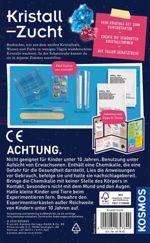 Das Kosmos Experimentierset Kristall-Zucht ermöglicht Kindern das Züchten eigener Kristalle. Es enthält alle notwendigen Materialien und eine Anleitung für verschiedene Kristallformen.