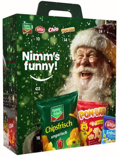 Zutaten: Mais, ERDNUSSKERNE, pflanzliche Öle (Sonnenblume, Raps, Palm in veränderlichen Gewichtsanteilen), WEIZENMEHL, Kartoffelpulver, Kartoffeln, Stärke (enthält WEIZEN), Zucker, Rosinen1, CASHEWKERNE, MANDELN, Dextrose, Speisesalz, Aroma (enthält SENF), Gewürze, Emulgatoren (Mono- und Diglyceride von Speisefettsäuren, Lecithine), Glukose-Fruktose-Sirup, Hefe, GERSTENMALZEXTRAKT, Zwiebelpulver, Hefeextrakt, WEIZENMALZMEHL, jodiertes Speisesalz (Speisesalz, Kaliumjodat), HAFERSPELZFASER, Backtriebmittel (Natriumcarbonate), Säureregulatoren (Natriumhydroxid, Calciumphosphate), Süßmolkenpulver (MILCH), Tomatenpulver, Balsamicoessigpulver (Traubenmostkonzentrat, Weinessig), Stabilisator (Natrium-Carboxymethylcellulose), Knoblauchpulver, Säuerungsmittel (Citronensäure, Äpfelsäure), Antioxidationsmittel (Extrakt aus Rosmarin), Aprikosenpulver, Honigpulver, geräuchertes Paprikapulver, Farbstoff (Paprikaextrakt), GERSTENMALZESSIGPULVER, geräuchertes Speisesalz, geräucherte Dextrose, färbendes Lebensmittel schwarzer Tee-Extrakt, Kräuter, GERSTENMALZESSIGEXTRAKT, Branntweinessigpulver. Kann Sesam und andere Schalenfrüchte (Haselnüsse, Walnüsse, Pecannüsse, Paranüsse, Pistazien, Macadamianüsse) enthalten. 1Ursprung: Nicht-EU
