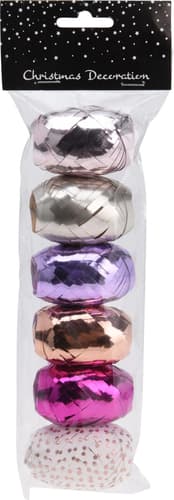Dieses Set enthält 6 Geschenkbänder in rosa. Sie eignen sich ideal zum Verpacken von Geschenken und für festliche Dekorationen.