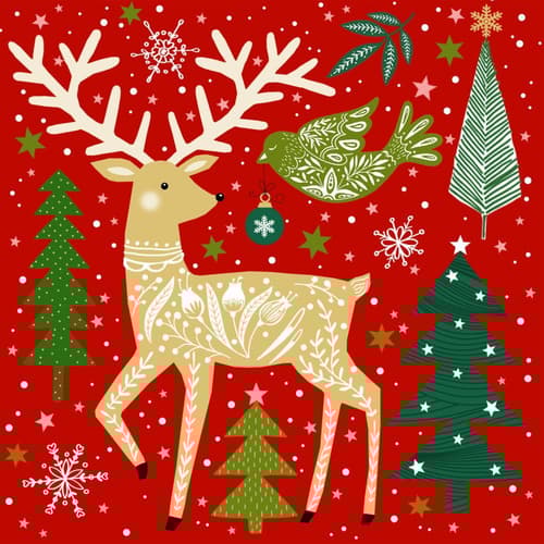 Die Braun & Company Atelier Servietten Folk Deer in Rot sind dreilagige Papierservietten im Format 33 × 33 cm. Das Design zeigt ein stilisiertes Hirschmotiv in Volkskunst-Optik.