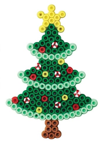 Das Hama Bügelperlen-Set Weihnachtsbaum enthält farbige Perlen und eine passende Steckplatte. Kinder können daraus ein weihnachtliches Motiv basteln und die Perlen anschließend bügeln.