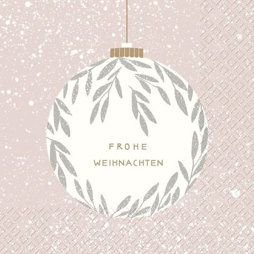 Die Stewo Servietten Frohe Weihnachten in Hellrosa sind dreilagige Papierservietten im Format 33 × 33 cm. Das Design zeigt einen schlichten Schriftzug in festlicher Optik.