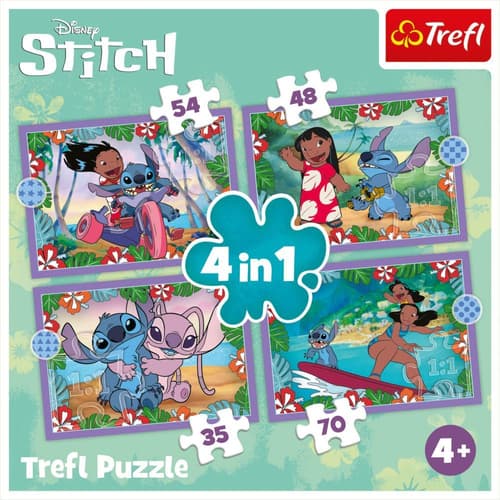 Das Puzzle-Set Disney Lilo & Stitch 4 in 1 enthält vier Puzzles mit unterschiedlichen Motiven der beliebten Figuren. Die Puzzleteile sind kindgerecht und in verschiedenen Schwierigkeitsstufen sortiert.