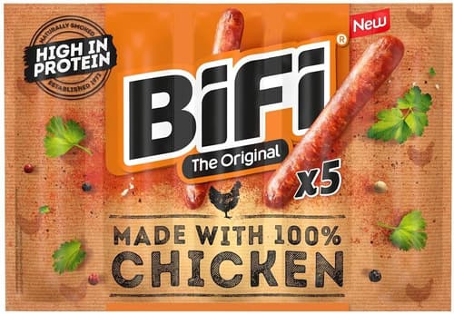Mit BiFi Chicken High Protein hast du immer einen kraftvollen Snack zur Hand: Hergestellt aus zartem Hähnchenfleisch und mit 30 % Eiweißanteil unterstützt er dich ideal in deinem aktiven Alltag. Ob beim Sport, unterwegs oder im Büro – dieser herzhafte Snack passt in jede Tasche und ist sofort verzehrbereit.