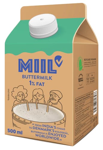 Probieren Sie unsere Miil-Buttermilch mit 1 % Fett. Durch den Fermentationsprozess mit Milchsäurebakterien erhalten Sie ein köstliches Produkt voller nützlicher Kulturen. Diese Kulturen verleihen ihr ihren typischen, leicht säuerlichen Geschmack und ihre cremige Konsistenz. Probieren Sie sie pur, um Ihren Durst zu stillen, oder verwenden Sie sie in einem Smoothie.