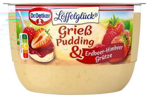 Dr. Oetker Grießpudding mit Erdbeer-Himbeer Grütze