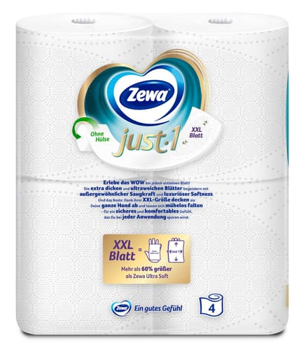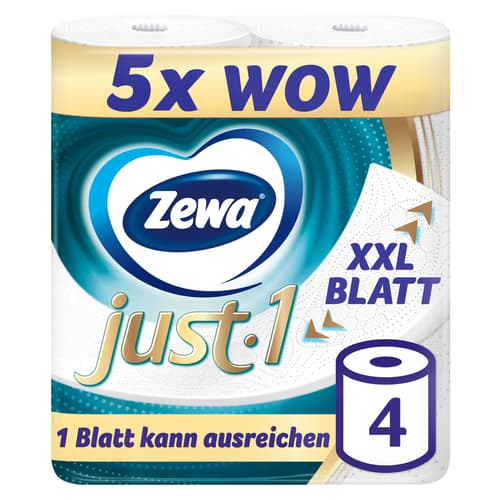Erlebe das WOW bei jedem einzelnen Blatt: Die extra dicken und ultraweichen Blätter von Zewa just 1 begeistern mit außergewöhnlicher Saugkraft und luxuriöser Softness. Dank ihrer XXL-Größe decken sie Deine ganze Hand ab und lassen sich mühelos falten – für ein sicheres und komfortables Gefühl bei jeder Anwendung.