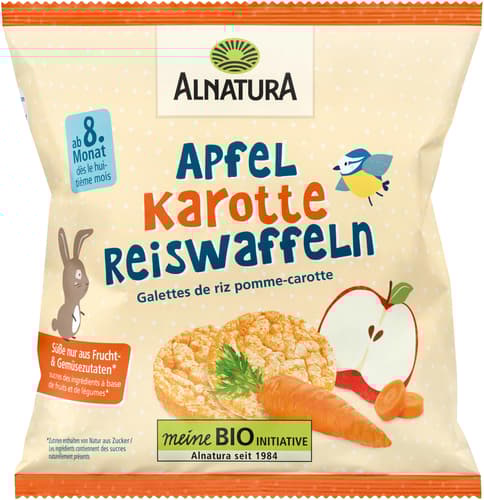 Bio Reiswaffeln mit Karotten- und Apfelsaftkonzentrat für Säuglinge ab dem 8. Monat und Kleinkinder